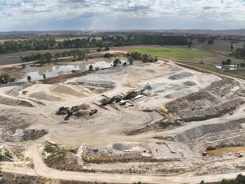 Situated on the flood plains of the Murray River, the Howlong Sand Quarry extracts and processes alluvial material to produce a coarse sand and river pebble in 7mm, 10/14mm and 20mm sizes.